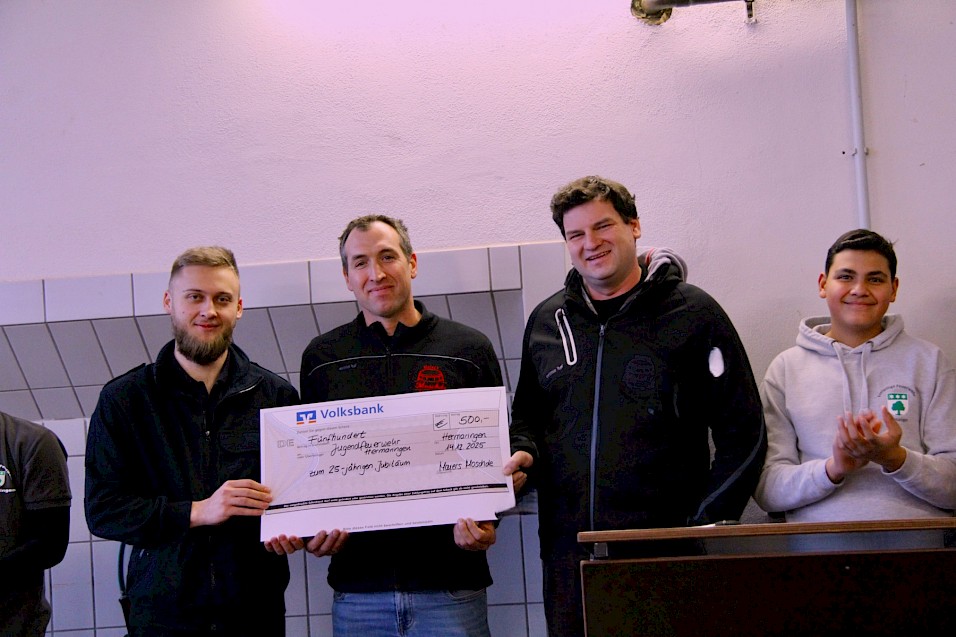 Ein weiterer Höhepunkt der Jubiläumsfeier war die Übergabe großzügiger Spenden zur Unterstützung der Jugendarbeit. Maiers Moschde spendete 500 €, die Gemeinde Hermaringen unterstützte die Jugendfeuerwehr mit 250 €. Für diese wertvolle Unterstützung bedankt sich die Jugendfeuerwehr Hermaringen herzlich.